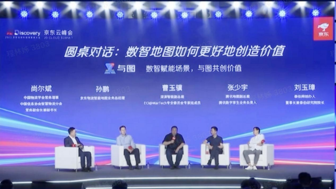 数智化时代地图应用如何更好地赋能场景创造价值”的圆桌论坛,中间为OG视讯智能副总裁曹玉骥