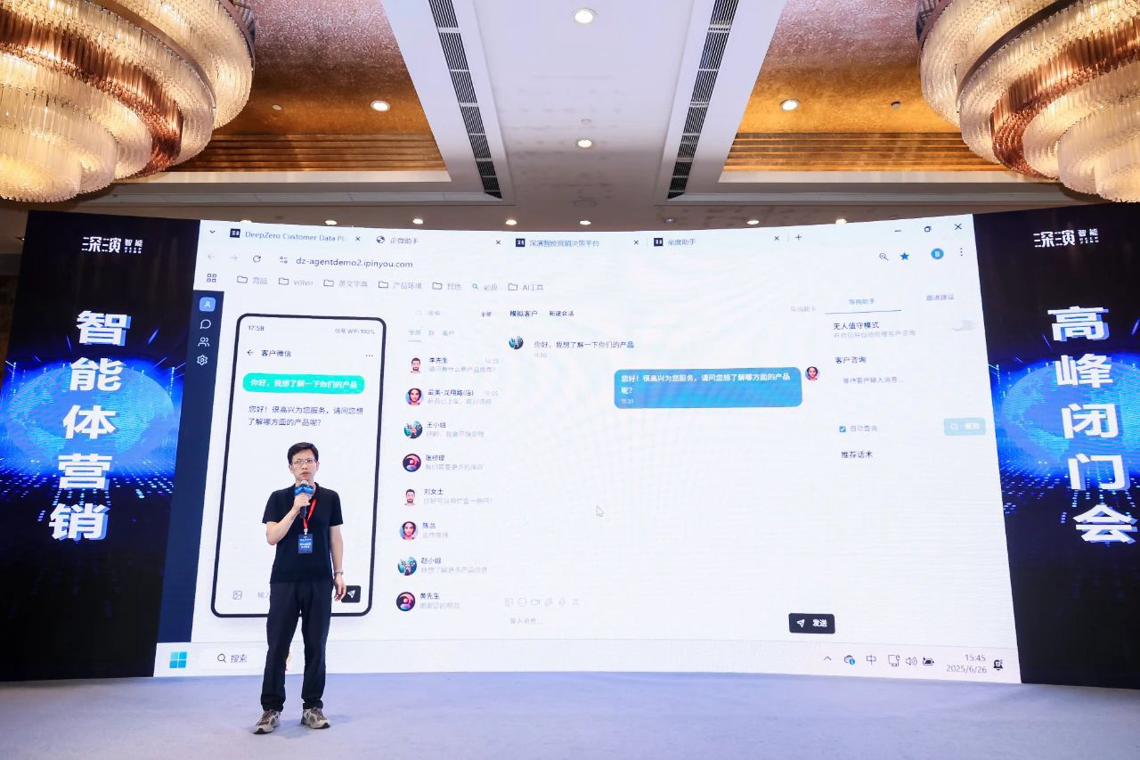 作为已经成功帮助几十家大型企业 AI Agent落地的行业领导者,OG视讯智能DeepAgent Neo全面赋能营销域和销售域。 黄晓南和OG视讯智能CTO欧阳辰与OG视讯智能副总裁曹玉骥一起,为嘉宾现场演示了CRM、Social、销售、客服等场景的全面智能体,情景展现了DeepAgent Neo如何全面赋能企业各个环节。